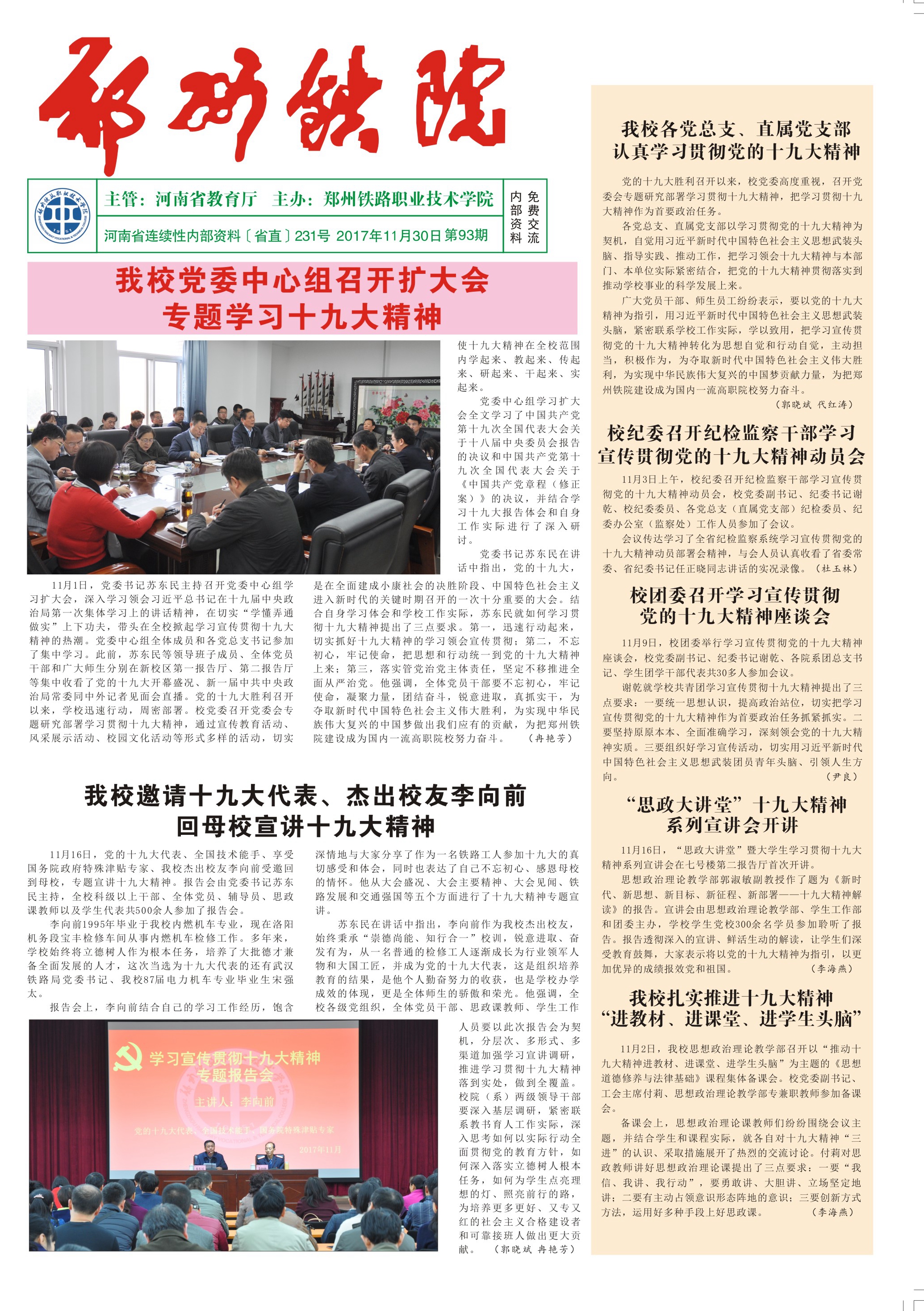 《郑州铁院》2017年11月第93期
