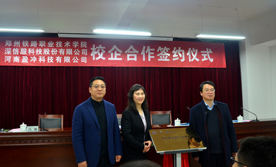12月17日,我校与深信服科技股份有限公司、河南盈冲科技有限公司举行三方校企合作签约暨揭牌仪式。会前,校长孔凡士会见了客人。副校长倪居、深信服科技股份有限公司副总裁姚诗成、河南盈冲科技有限公司总经理杨霁虹出席会议,人工智能学院全体教师参加会议,校企合作办主任冯湘主持会议。