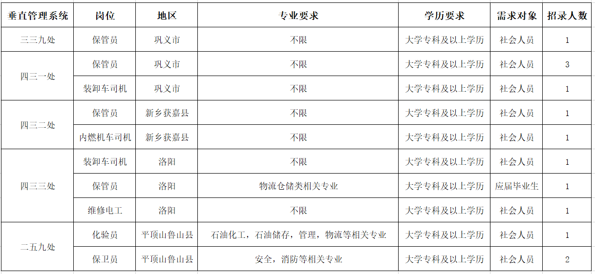 2020国家粮食和物资储备局事业单位招聘职位表(河南局)