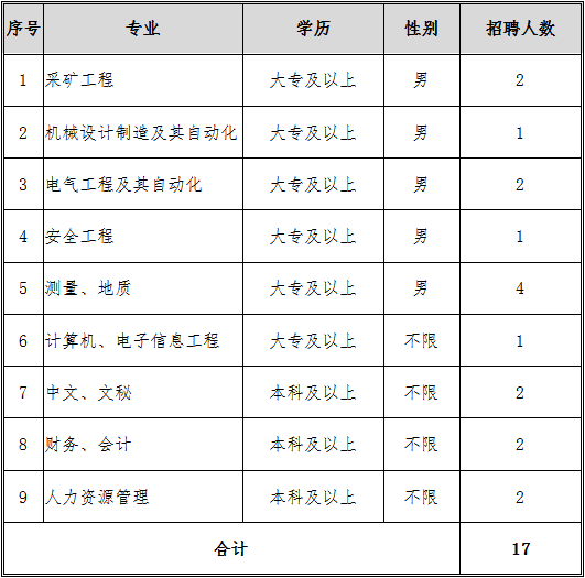 煤炭院校、一类本科院校煤矿主体专业毕业生经过面试可签订就业协议;其他院校、其他专业毕业生经过笔试、面试确定拟录用人员。