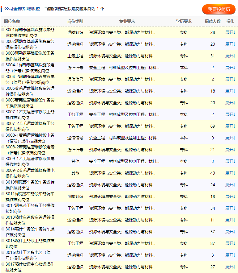 中国铁路乌鲁木齐局集团有限公司根据运输生产工作需要,现招聘全日制普通高校2019、2020届大专(高职)及以上学历毕业生。具体事项公告如下: