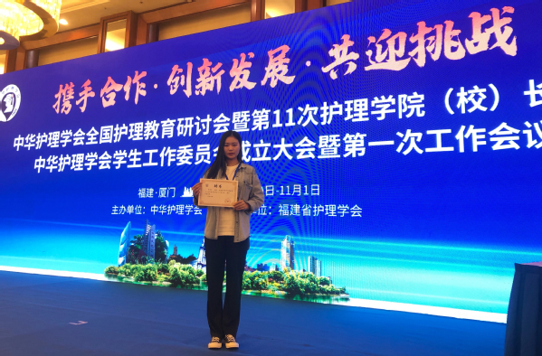 10月30日至11月1日 ,中华护理学会在福建省厦门市召开中华护理学会学生工作委员会成立大会暨第一次工作会议,经过前期院校推荐、学会遴选等环节,我校护理专业禹露同学成功当选为中华护理学会学生工作委员会委员,首届学生工作委员会共包括博士研究生、硕士研究生、本科生、高职生共102人。