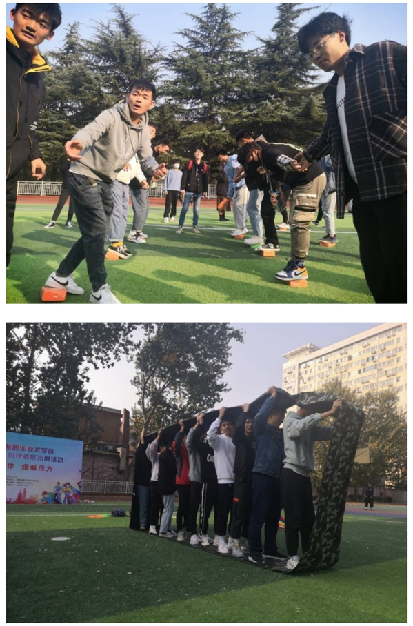 近日,学校大学生心理健康中心在幸福路校区开展了以“团结协作、缓解压力”为主题的心理健康教育户外素质拓展活动,共有八支学院新生代表队参加此次活动。2020级新生精神饱满、热情高涨,活动中积极配合,显示出良好的团队精神、健康向上的心理素质,圆满完成了此次活动。