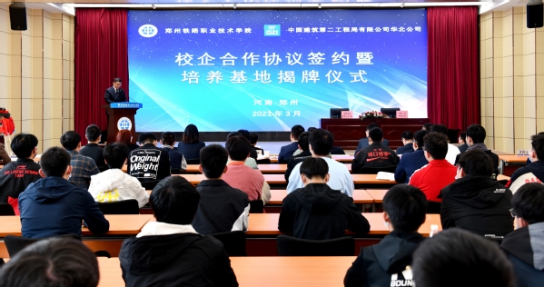 3月25日,我校与中建二局华北公司校企合作协议签约暨培养基地揭牌仪式在学校第一报告厅隆重举行。中建二局总经理助理、华北公司党委书记、董事长陈广玉,学校党委书记许琰,党委副书记、校长孔凡士,副校长倪居、焦宏涛出席仪式。中建二局华北公司相关负责人,学校相关部门负责人及继续教育学院、铁道工程学院的师生代表参加会议。会议由副校长焦宏涛主持。