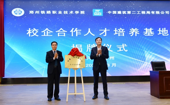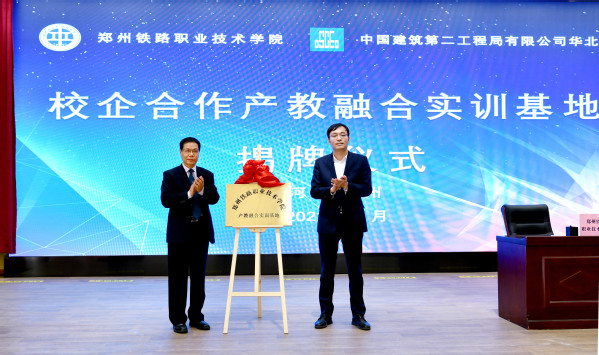 党委书记许琰与中建二局总经理助理、华北公司党委书记、董事长陈广玉共同为产教融合实训基地揭牌