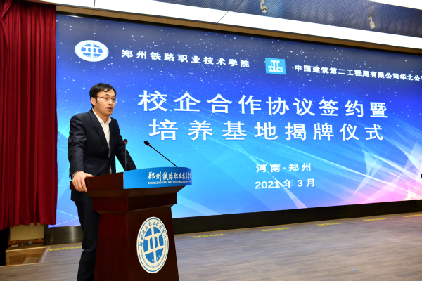 中建二局总经理助理、华北公司党委书记、董事长陈广玉在致辞中表示,mg娱乐电子游戏官网秉承的“家国情、铁路魂、工匠心、复兴梦”的核心文化理念与中建二局华北公司的“业绩文化”不谋而合,公司将以校企合作为依托,打造旨在提高学生实践能力和岗位适应能力的就业实践平台,构建独具特色的人才培养模式,探索建筑行业人才培养之路,优势互补、资源共享。希望双方本着“平等自愿、优势互补、互惠互利”的原则,形成特色化、代表性的合作模式,实现学校、企业、学生“三赢”的局面。