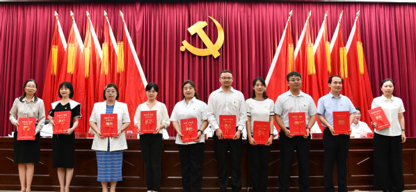 与会领导为学校优秀共产党员、优秀党务工作者、优秀党务信息员代表颁发荣誉证书