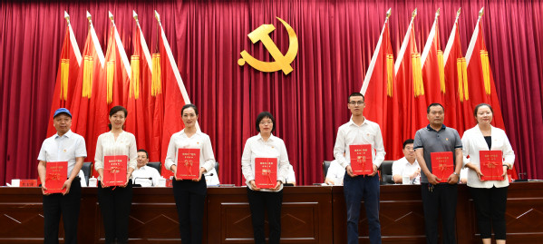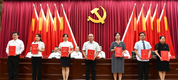 党委书记许琰为老党员代表颁发“光荣在党50年”纪念章