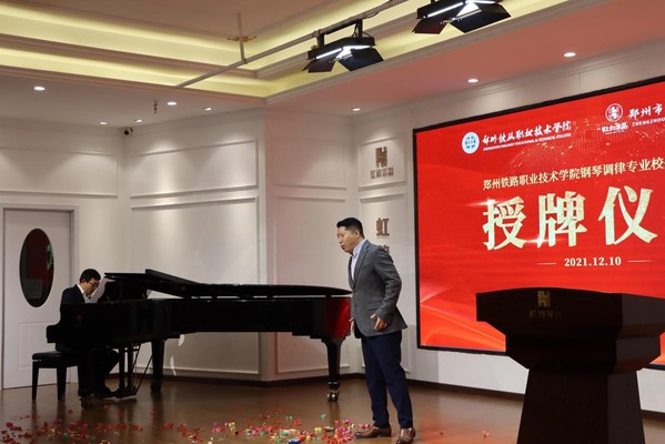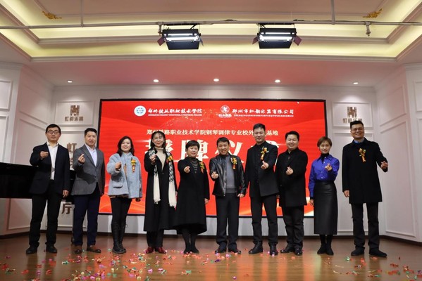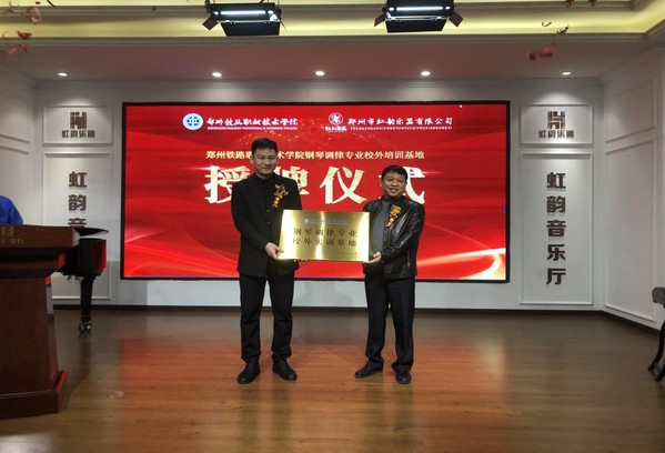 12月10日上午,我校与郑州市虹韵乐器有限公司“钢琴调律专业校外实训基地”授牌仪式在虹韵音乐厅举行。艺术学院负责人、郑州市虹韵乐器有限公司董事长刘进增、学校音乐表演教研室主任、骨干教师及企业相关部门人员参加授牌仪式。