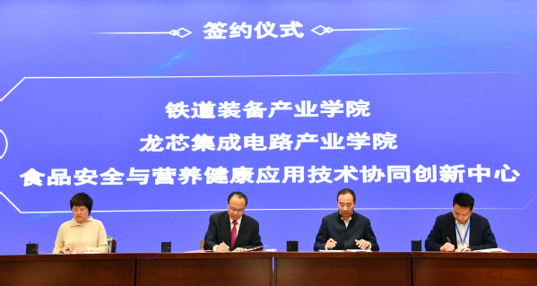会议宣读了《郑州局集团公司关于进一步推进与mg娱乐电子游戏官网产教融合、校企合作工作的指导意见》《关于调整常务副理事长、副理事长、常务理事单位的通知》《关于调整常务副理事长、副理事长、常务理事、秘书长名单的通知》等文件,举行了mg娱乐电子游戏官网与中国铁路郑州局集团有限公司、龙芯中科技术股份有限公司、郑州捷安高科股份有限公司等多家企业共建铁道装备产业学院、龙芯集成电路产业学院等13个产业学院,铁路交通应用技术协同创新中心等2个协同创新中心的签约仪式及揭牌仪式。最后,举行了杭州万维镜像科技有限公司、河南欧亚智能科技有限公司分别向mg娱乐电子游戏官网捐赠500万元、20万元的企业捐赠仪式。
