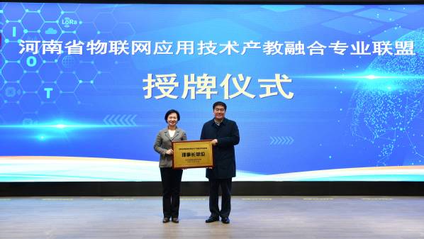 大会表决通过了《河南省物联网应用技术产教融合专业联盟章程》,选举产生了理事长单位、常务副理事长单位、副理事长单位等工作机构和人员名单。与会领导为理事长单位、常务副理事长单位进行了授牌。
