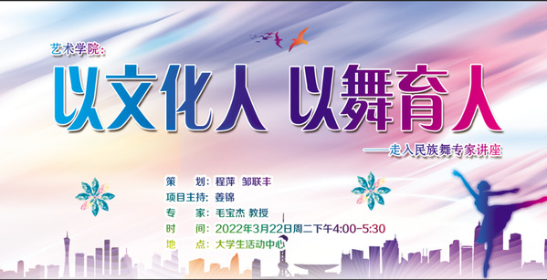 近日,艺术学院依托特色校园文化建设项目开展“以文化人 以舞育人”民族舞系列展活动。本次活动包含“以文化人 以舞育人”——走入民族舞专家讲座和弘扬中华优秀传统文化校园民族舞图片展两项主题活动。