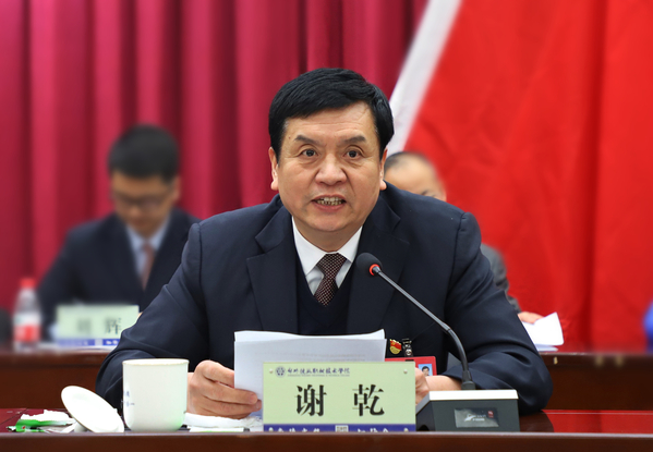 谢乾表示,本次会议依法办事,组织严谨,安排紧凑,会风端正,自始至终充满团结、民主、务实、和谐的氛围。各位代表认真履行代表职责,依法行使民主权利,围绕会议议题集思广益,在事关学校改革发展的重大问题和涉及师生切身利益的具体问题上,提出了许多建设性的意见和建议,展现出高度的责任感和强烈的主人翁意识,表达了对加快学校发展的迫切愿望和坚定信心,体现了心系发展、关注改革、关爱民生的责任情怀,展示了奋发向上、团结进取的精神面貌。全校上下要加深共享理念,增强主人翁意识,提高教职工当家做主能力,有效推进学校民主政治建设,进一步深化校务公开和工会事务公开,确保教职工的知情权、参与权和监督权。通过加大典型案例宣传,充分发挥组织引领作用,不断提高师生员工道德修养和业务水平。要把本次教代会和工代会的精神传达到每一位教职工,把思想统一到干事创业上、把精力集中到改革发展上、把功夫下到落实落细上,全力以赴做好各项工作,踔厉奋发谱写学校事业发展新篇章。