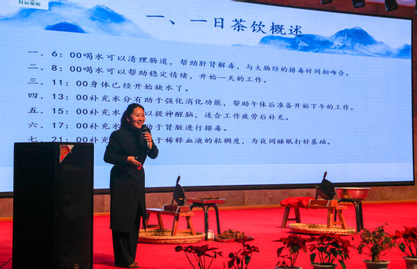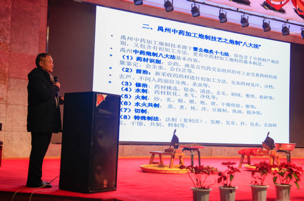 许昌市级传承人逯安新分享了禹州中药加工炮制技艺,重点讲解了禹州中药炮制八大法、五侯经验法等特色炮制技艺;禹州中药炮制师带徒班学员张晓红演讲了经炮制的食材在生活中的作用,通俗易懂地分享了“水与生活、生活与茶饮、体质与喝茶”的健康调理知识。