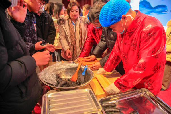 最后,各位非遗传承人分别现场演示了禹州切制技艺和手工制作芝麻丸,他们以通俗易懂的语言、真挚的情感,向在场的学生们展示了非遗文化的独特魅力,引导同学们学习工匠精神,师生们跃跃欲试,纷纷动手实践,现场气氛异常热烈。