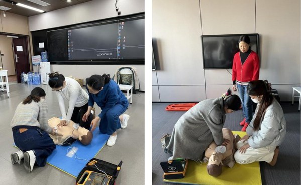 本次培训分为理论和实操两部分。培训内容重点为心肺复苏、AED的使用、气道异物梗阻、创伤救护、站车常见急症及意外伤害处理等。尤其是在实操环节,学员们在培训老师指导下,通过现场模拟操作,体验救护方法和技巧,有效加深了对应急救护技能的掌握。