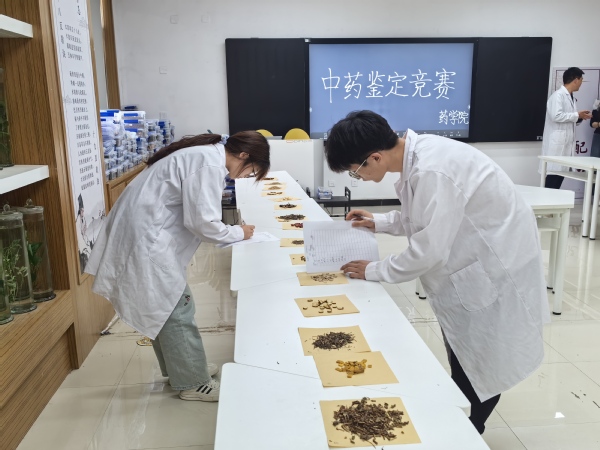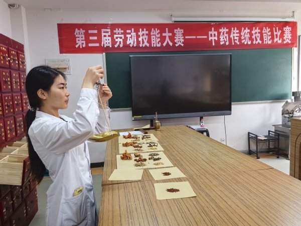 在药学院承办的中药传统技能的赛项中,选手们认真细致地对20味中药材或饮片的性状进行了鉴别,并在限定时间内采用无药斗抓药方式进行中药调剂,考验了选手们的实践操作能力和劳动职业素养。
