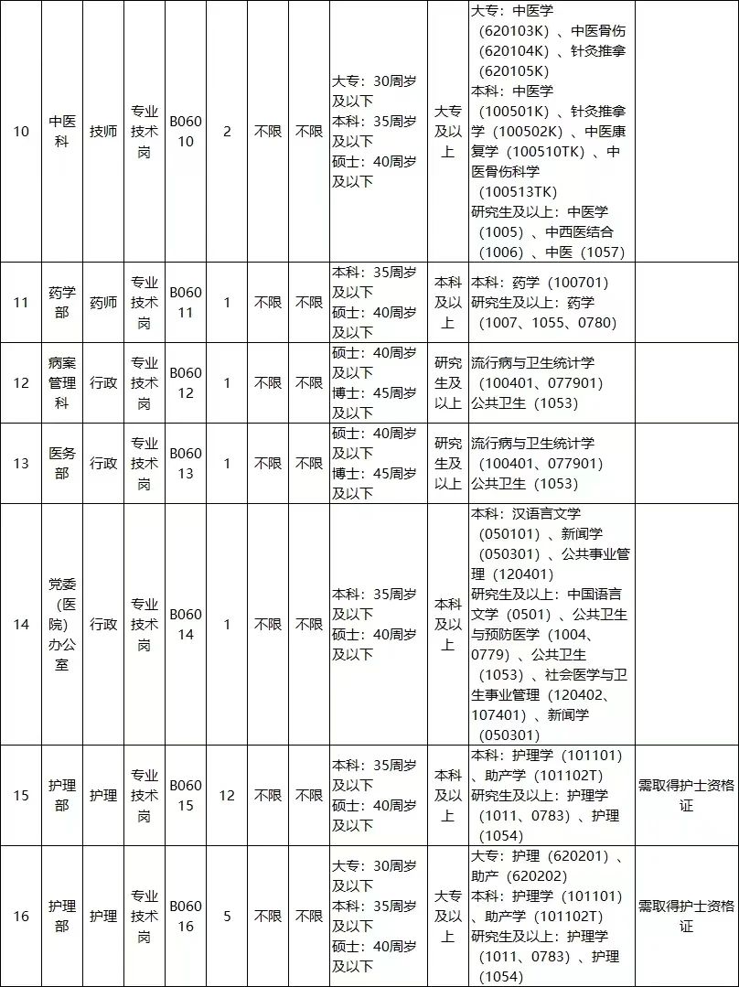 7.符合招聘岗位年龄要求,30周岁及以下是指1993年6月13日(含)后出生,35周岁及以下是指1988年6月13日(含)后出生,40周岁及以下是指1983年6月13日(含)后出生,45周岁及以下是指1978年6月13日(含)后出生。具体年龄要求详见《新疆医科大学第六附属医院2024年第一批面向社会公开招聘编制外工作人员岗位设置一览表》如上。