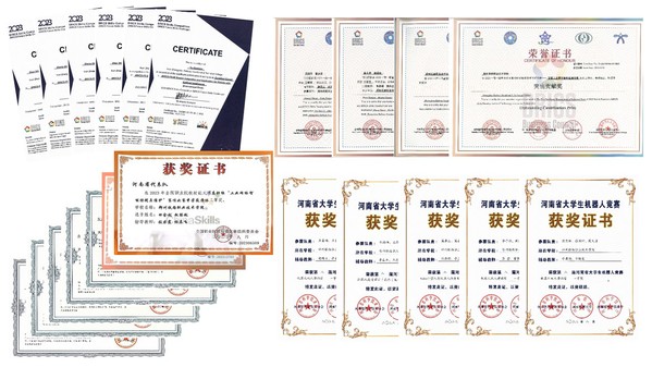近年来,机电工程学院鼓励师生参加各级各类技能大赛,形成了“赛教融合”育人模式,通过参加技能大赛不断提高人才培养质量和育人水平。其中参加全国职业院校技能大赛获得国赛二等奖1项,三等奖3项,参加“挑战杯——彩虹人生”全国职业学校创新创效创业大赛获得国赛三等奖1项,参加中国机器人及人工智能大赛获得国赛一等奖2项,参加“高教杯”全国大学生先进成图大赛获得国赛一等奖6项,参加互联网+大学生创新创业大赛获得省赛二等奖6项,参加河南省大学生机器人竞赛获得冠军7项、一等奖20余项;参加国内各项大赛获得其他国赛、省赛各种奖励200余项。