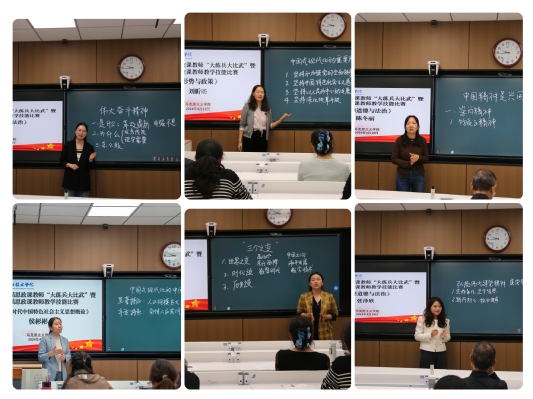 以培促学,以学提效,不断提升教师思想政治教育专业素养。积极组织教师参加周末理论大讲堂、新教材解读、专业技术继续教育、集体备课等培训活动。注重对新参加工作青年教师的业务指导,开展一对一结对式教学指导,进行教育学、心理学培训,举办以“如何备好课、如何上好课”为主题的教研活动,连续多年开展“大练兵、大比武、大展示、大提升”系列活动,为青年教师提供了一个学以致用、教学相长的实践平台。马院每年组织教师暑期实践研修,先后前往延安、韶山、遵义、大别山等地开展思政教学实践活动。
