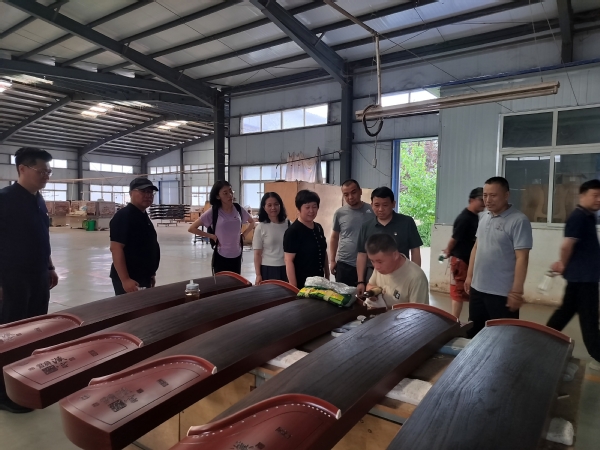 中州民乐第二代传承人董事长代胜民详细介绍了中州民乐的发展历程,并陪同艺术学院调研队伍参观了“中州民乐文化馆”,观摩了古筝、古琴、琵琶、阮等生产车间。在参观过程中,大家详细了解了民族乐器的种类分布、发展历史、加工工艺、制作流程和行业创新困局等。在古筝生产车间,车间的师傅们从面板选择、风干压片,到挖嵌定型、着漆上色、安装调试,一道繁杂的工序都是由手工完成,用精益求精的专业工匠精神和高超的技术保证了每一个乐器产品的质量。