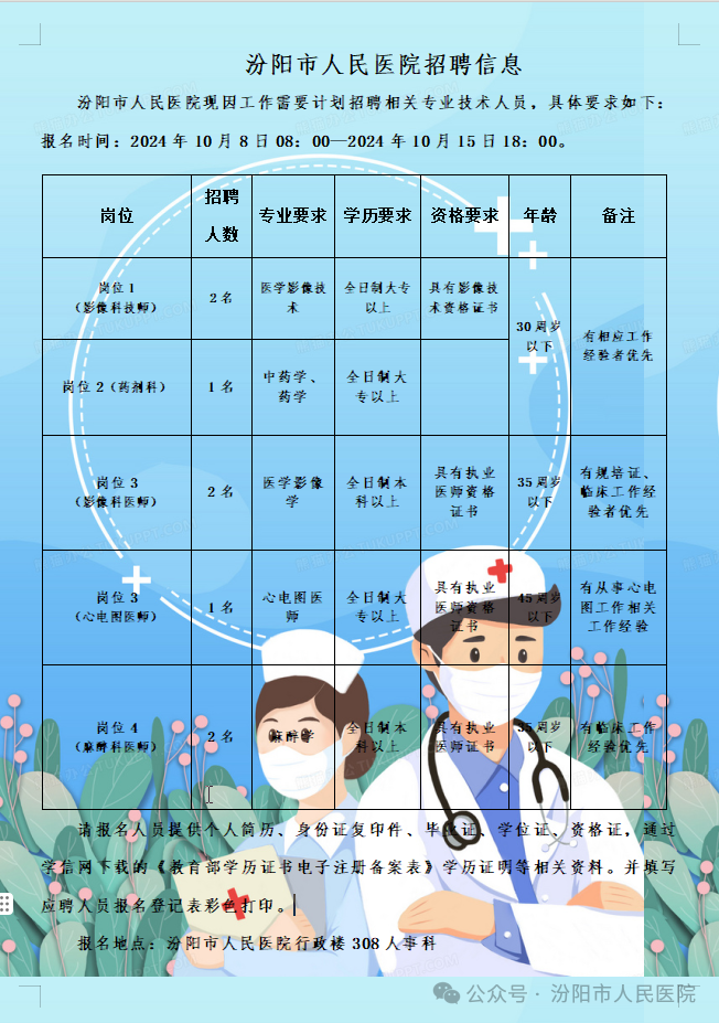 【稳就业、精准帮扶】优秀企业校园招聘会No.113:汾阳市人民医院2024年度招聘公告