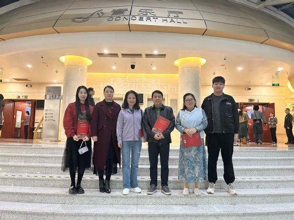 观摩过程中,公共艺术教师们全神贯注,不放过任何一个细节。他们深刻意识到,这场音乐会不仅仅是一场视听盛宴,更是一次珍贵的美育教育资源宝库。参与活动的杨虹偲老师表示:“长征题材的音乐作品中蕴含着丰富的文化内涵和民族精神,这些都是我们在公共艺术教学中可以深度挖掘的内容。通过音乐,我们可以让学生更好地理解长征精神的实质,引导他们传承和弘扬这种伟大的精神。” 教师们在欣赏艺术之美的同时,也在思考如何将这些优秀的音乐作品融入到日常教学中,以多样化的教学方式激发学生对艺术的兴趣和对历史文化的热爱。这次观摩实践活动为教师们带来了许多新的教学思路,比如通过音乐欣赏、音乐创作等课程环节,让学生体验长征音乐作品的魅力,从而增强他们的民族自豪感和文化自信。