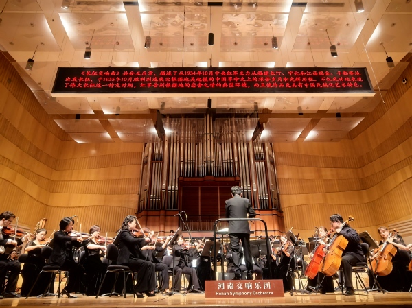 活动当日,教师们怀着崇敬与期待的心情步入音乐会现场。此次音乐会以红军长征为主题,通过精湛的音乐表演生动展现了长征历程中的艰难险阻、英勇无畏和坚韧不拔的精神。本场音乐会由中共河南省委宣传部、河南省文化和旅游厅主办,河南歌舞演艺集团承办。邀请中国音乐学院指挥系主任,博士研究生导师,著名指挥家金野教授执棒。上半场将首演新作品《黄河回旋》,并携手青年琵琶演奏家苗云钦女士、青年胡琴演奏家成文文女士先后上演《晚秋》、《大地之心》两部协奏曲。下半场演出由指挥家金野亲自编订的,由著名作曲家丁善德创作的《长征交响曲》。气势磅礴的交响乐的每一个音符、每一段旋律都像是一把钥匙,打开了一扇通往长征岁月的大门,以其宏大的叙事和震撼的表现力,展现出红军长征的波澜壮阔,仿佛红军战士们穿越时空,用音乐向观众们诉说着那段可歌可泣的历史。
