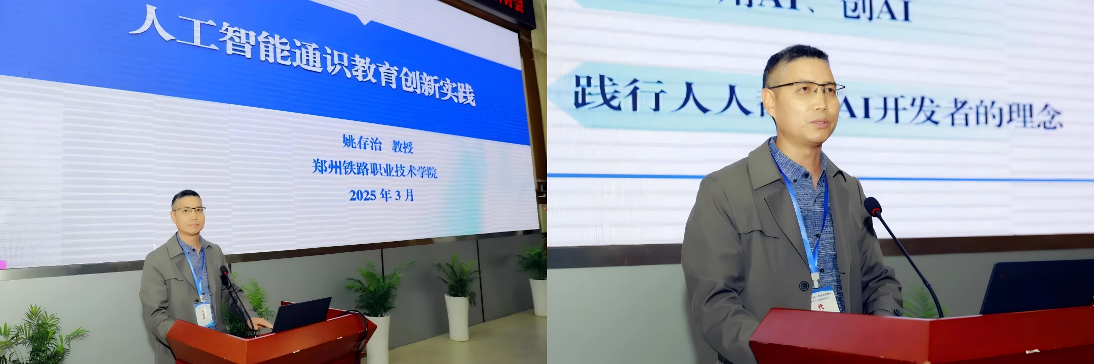 会上,我校人工智能学院人工智能教研室主任姚存治教授作了题为“人工智能通识教育创新实践”的主旨报告。在报告中,姚存治教授详细介绍了我校人工智能通识课开设概况、人工智能通识课创新实践,并与与会代表讨论了人工智能通识课的未来设想。