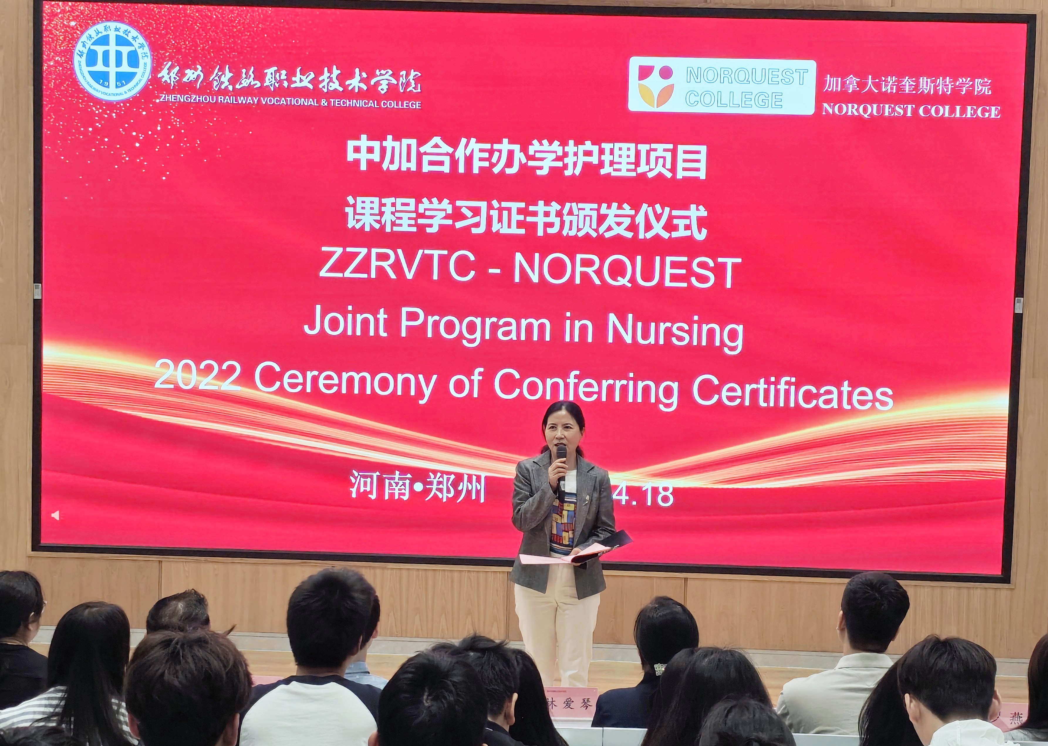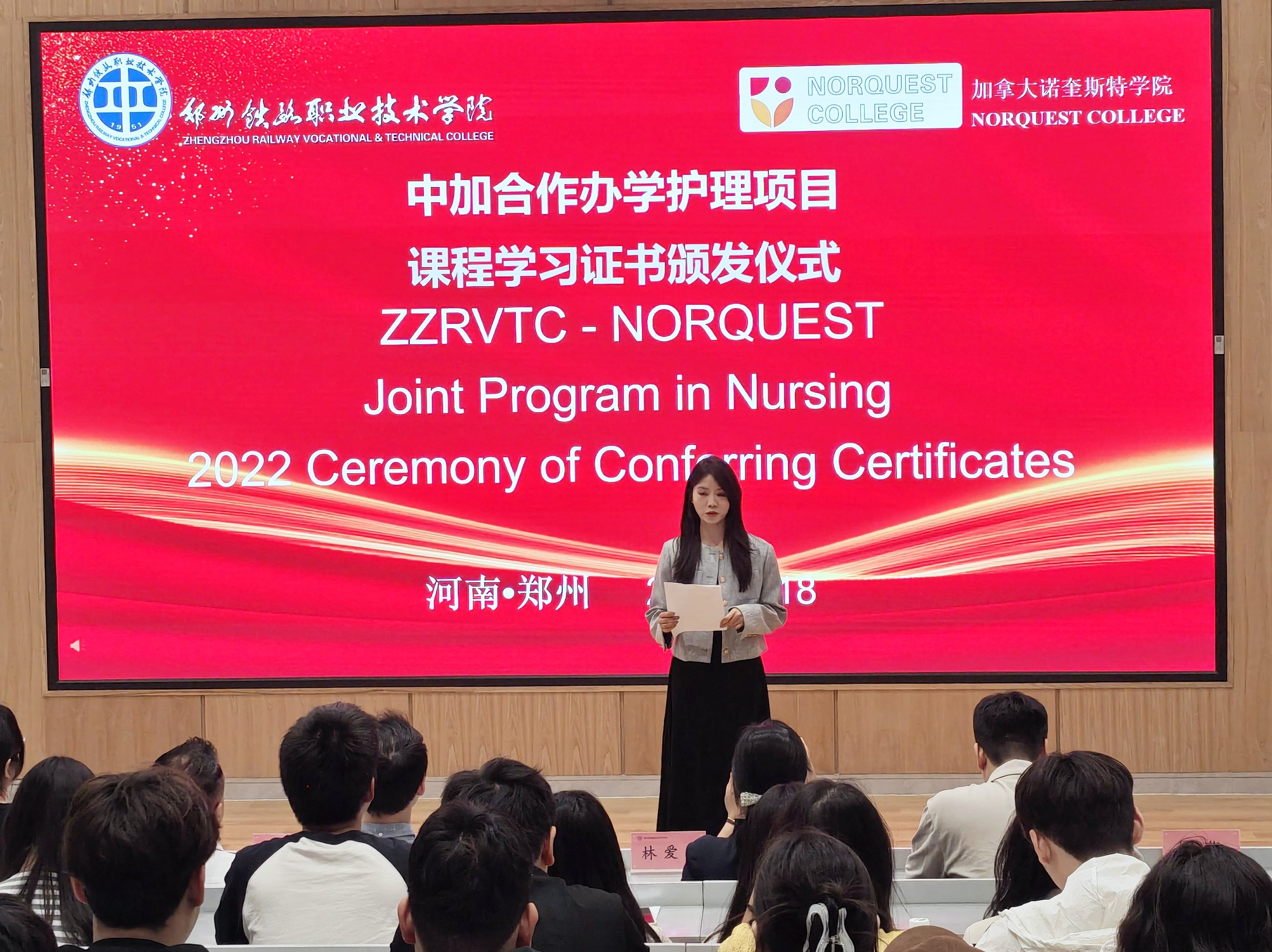 4月18日,我校成功举办中加合作办学护理项目2022级课程学习证书颁发仪式。护理学院、国际交流与合作处、丝路书院(国际教育学院)以及加拿大诺奎斯特学院等单位的负责人、教师代表与护理专业各年级学生共同见证了这一重要时刻。