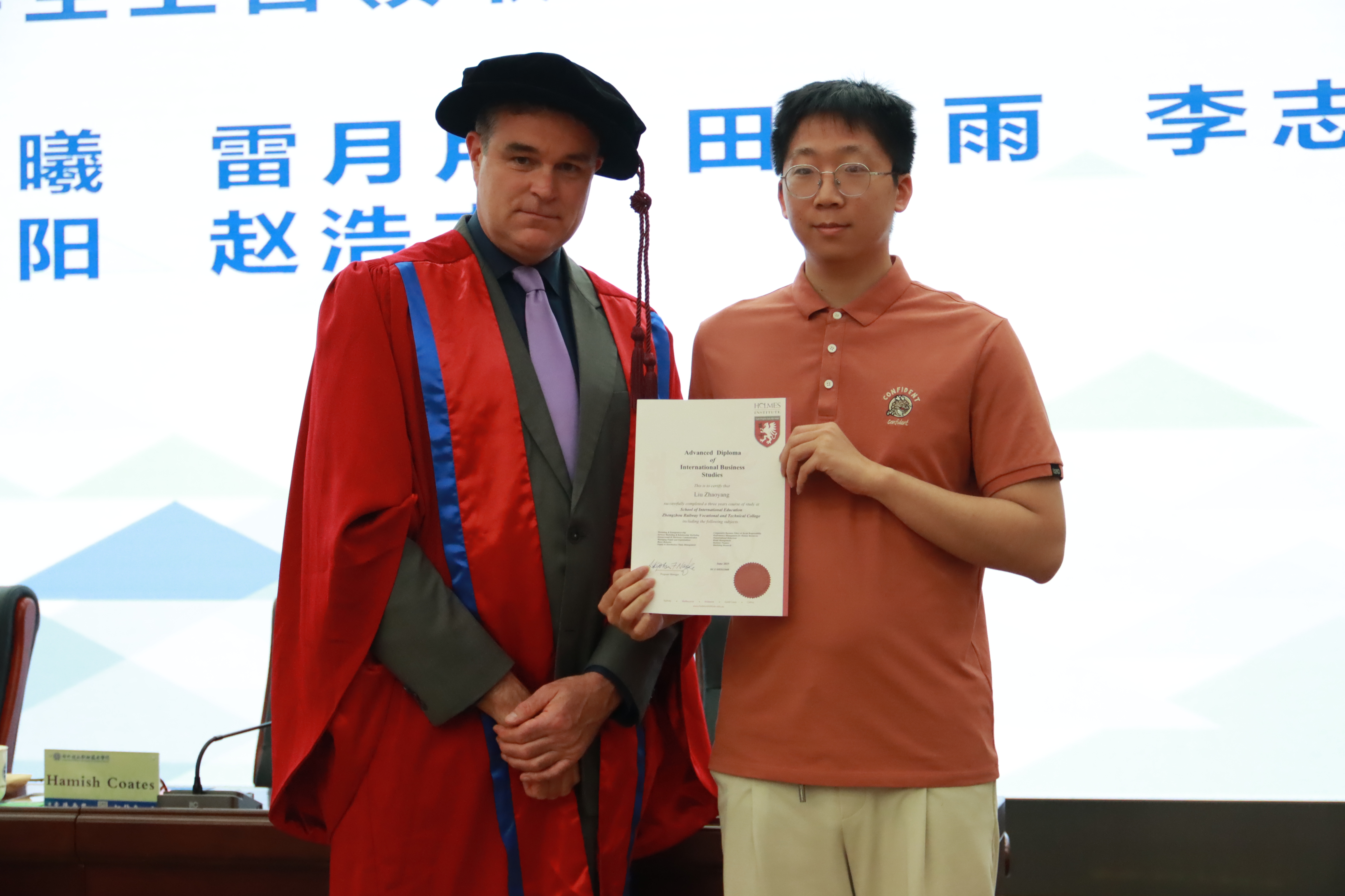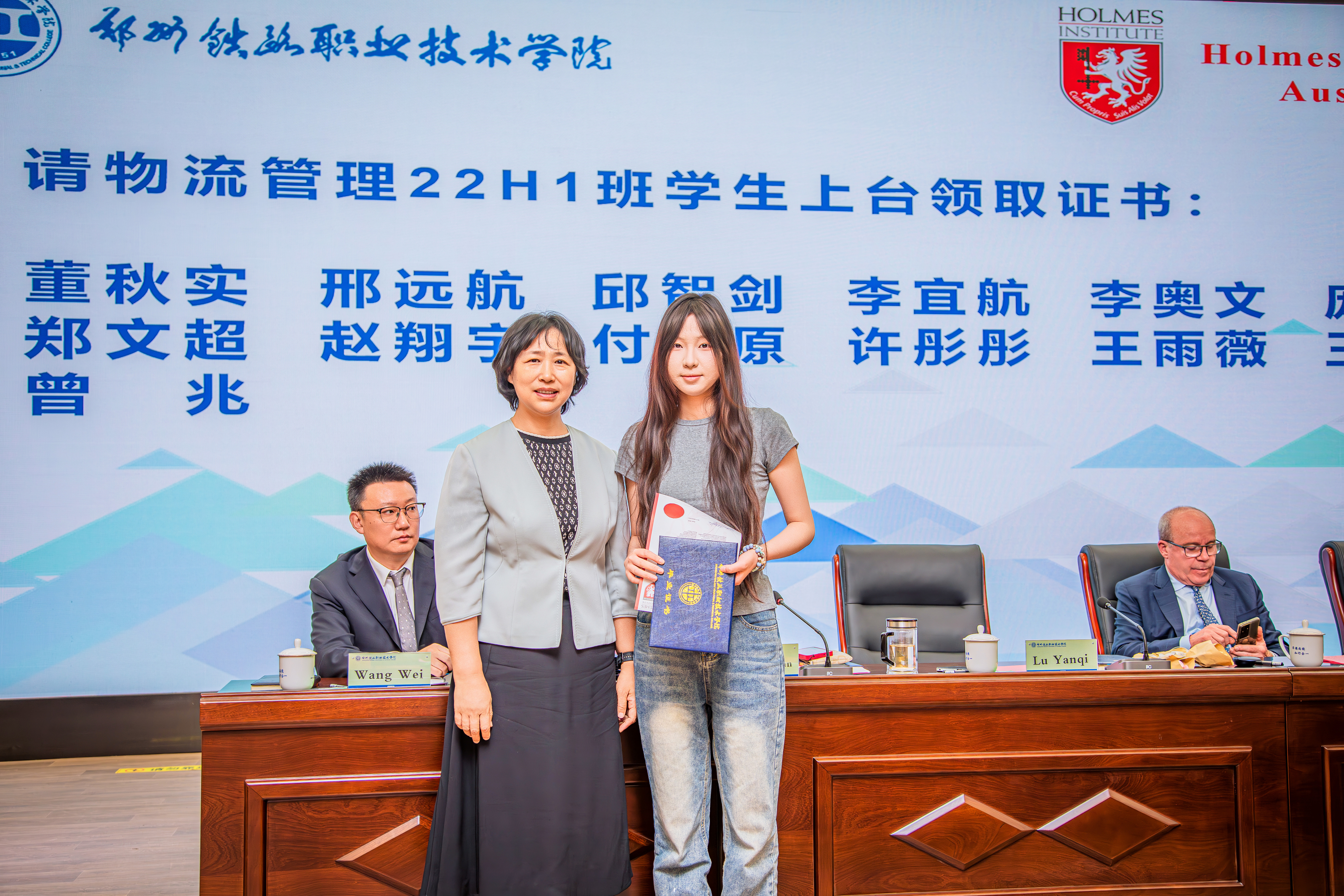 6月4日上午,我校在新校区第一报告厅举办中澳合作办学项目2025届毕业证书颁发仪式。副校长陆艳琦出席毕业典礼,澳大利亚霍尔姆斯教育集团董事长斯蒂芬、执行院长寇海明、董事孙毅,我校国际交流与合作处、运输管理学院、商学院、丝路书院(国际教育学院)负责人及师生参加毕业典礼。典礼由丝路书院(国际教育学院)负责人主持。
