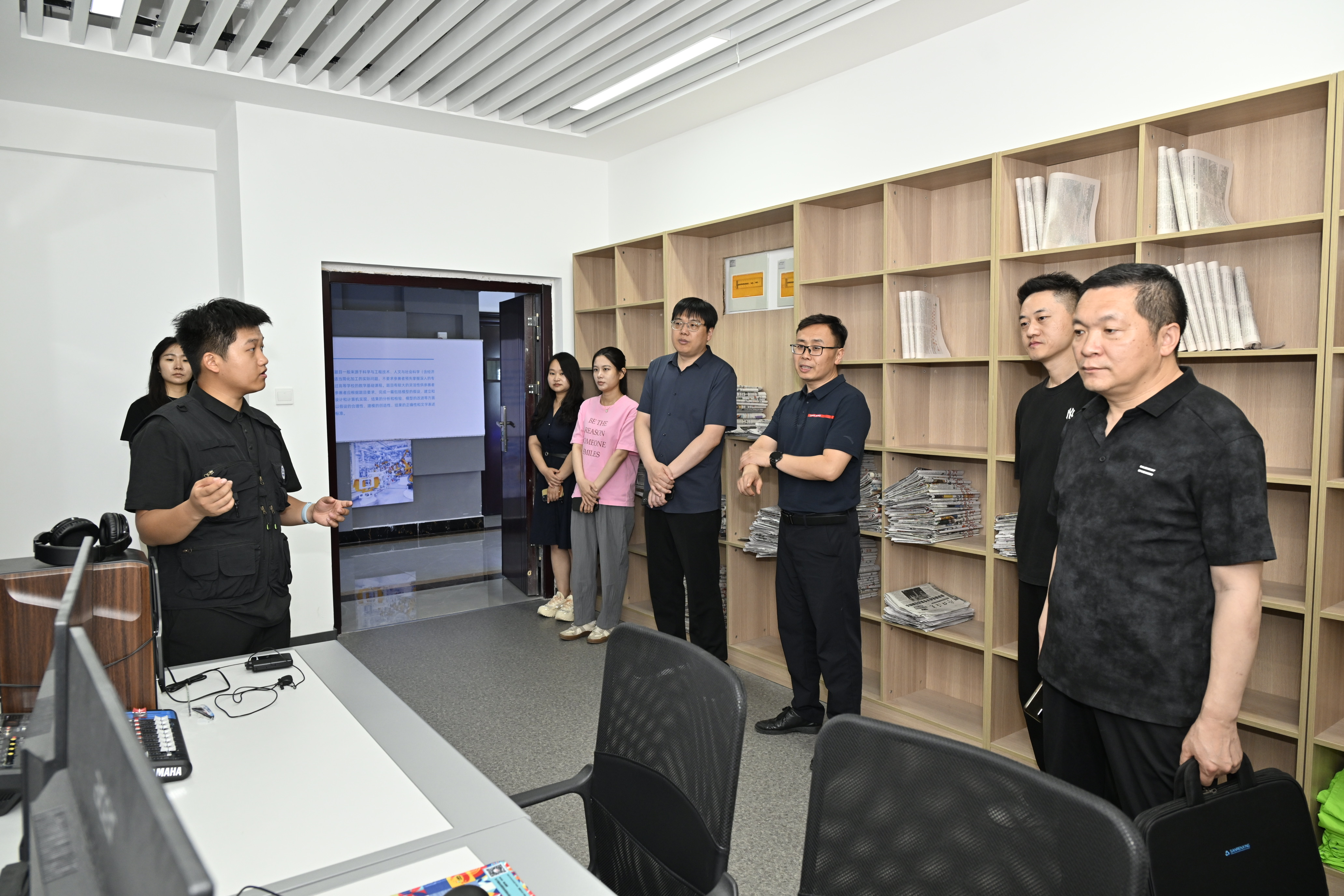 会后,与会人员集体参观了学校融媒体中心。