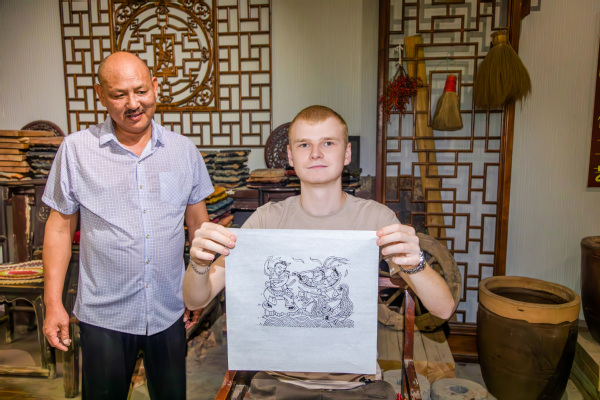 非遗匠心:墨香中的文化传承。在尹氏老天成年画博物馆,留学生们体验了木版年画印刷技艺。非遗传承人尹国法演示“一版一色”套印技法,留学生们认真学习“三轻三重”要领,成功印制《哪吒闹海》年画。中俄学生还合作完成“友谊套印”作品,将中国传统生肖图案与俄罗斯纹样巧妙融合,在墨香中感受非遗魅力。