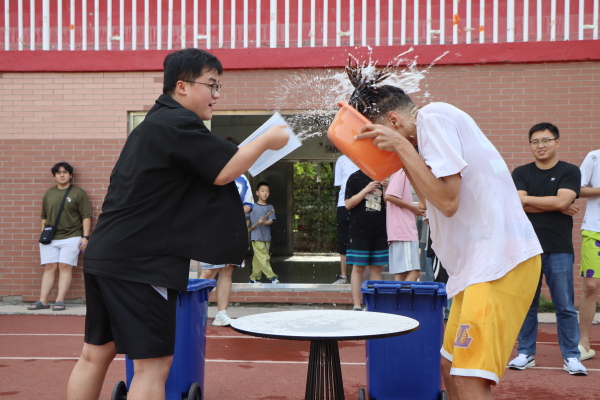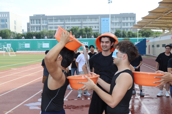 猜拳泼水,释放情绪轻装上阵。猜拳泼水淘汰赛瞬间点燃全场热情。“石头、剪刀、布”的呐喊此起彼伏,胜者扬手泼出的水花,如同卸下心头的压力重负。被清凉“击中”的淘汰者笑着离场,新队员即刻接力,展现着面对挫折的豁达心态。简单游戏蕴藏情绪释放的智慧,留学生们在畅快互动中学会为心灵“降温”。