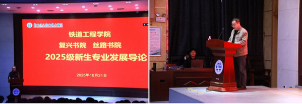 为帮助2025级新生筑牢专业认知根基、明晰职业发展方向,10 月 21日,铁道工程学院联合复兴书院、丝路书院举办新生发展导论座谈会。学院领导班子成员、各教研室主任、行业企业专家代表以及书院领导、辅导员共同参会,以“分层讲解 + 精准赋能” 的形式,为全体25级新生送上一堂兼具深度与温度的入学引导课。