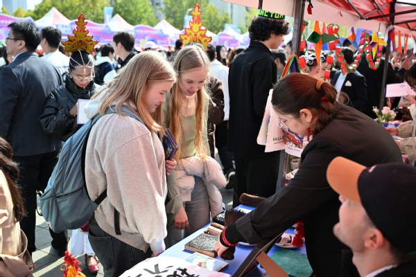 在非遗展区,我校留学生化身“非遗文化传播者”,为各国师生带来了铝编和朱仙镇木版年画展示体验。参观者为铝编摆件的精巧造型惊叹,反复询问“如何才能编出这样的造型”;也有外国师生拿着自己拓印的年画,兴奋地向留学生请教年画背后的故事。这种以非遗为载体的交流,增强了各国师生对中国文化的认知,也迅速拉近了彼此的距离。经文化节组织方评选,我校荣获五洲文化最佳呈现奖。