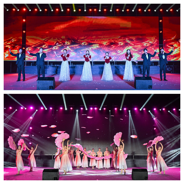 晚会在大学生电声乐队带来的《雨爱》中拉开帷幕,大学生舞蹈团表演的《红旗颂》,承载着先辈的光荣与梦想,凝聚着中华民族向着伟大复兴的中国梦奋勇前行。大学生民乐团、大学生书画社、大学生武术社带来的表演《象王行》,将传统民族乐器与书法、武术结合,为观众带来独特的国风之美。舞蹈《有我》彰显青春力量,展现新时代青年有梦则刚、初心不忘;模特走秀《Diamonds》为晚会注入时尚活力,同学们自信迈步,在灯光下诠释青春的多元与个性,彰显出青年人的朝气与创意。街舞《“舞”力迎新》用动感的节奏、酷炫的舞步,将青年学子的蓬勃朝气与无限活力展现得淋漓尽致,引爆全场热情。配乐诗朗诵《总有一天》是为纪念中国人民抗日战争胜利80周年而创作,以深情语调回溯历史,引发在场师生的情感共鸣。歌伴舞《五星红旗》,张爽老师的歌声和大学生舞蹈团优美的舞姿结合,让新生们感受到校园里师生间亦师亦友的温馨氛围,传递坚守初心、砥砺前行的信念,引导师生铭记来路、坚定方向。晚会在大学生合唱团带来的合唱《在灿烂阳光下》中落下帷幕。