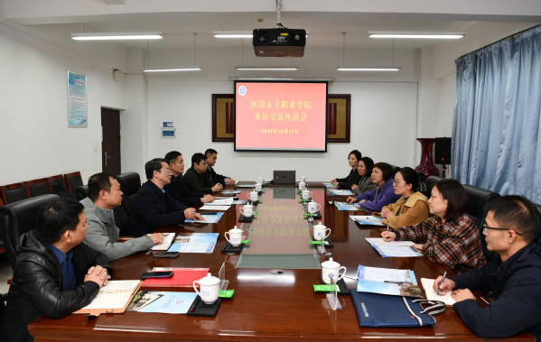 10月27日下午,河南女子职业学院党委副书记马立一行6人来校交流,就3名干部到我校挂职交流事宜开展座谈。我校党委副书记倪居出席座谈会议,党委组织部、教务处、电气工程学院、艺术学院等单位负责人参加会议。