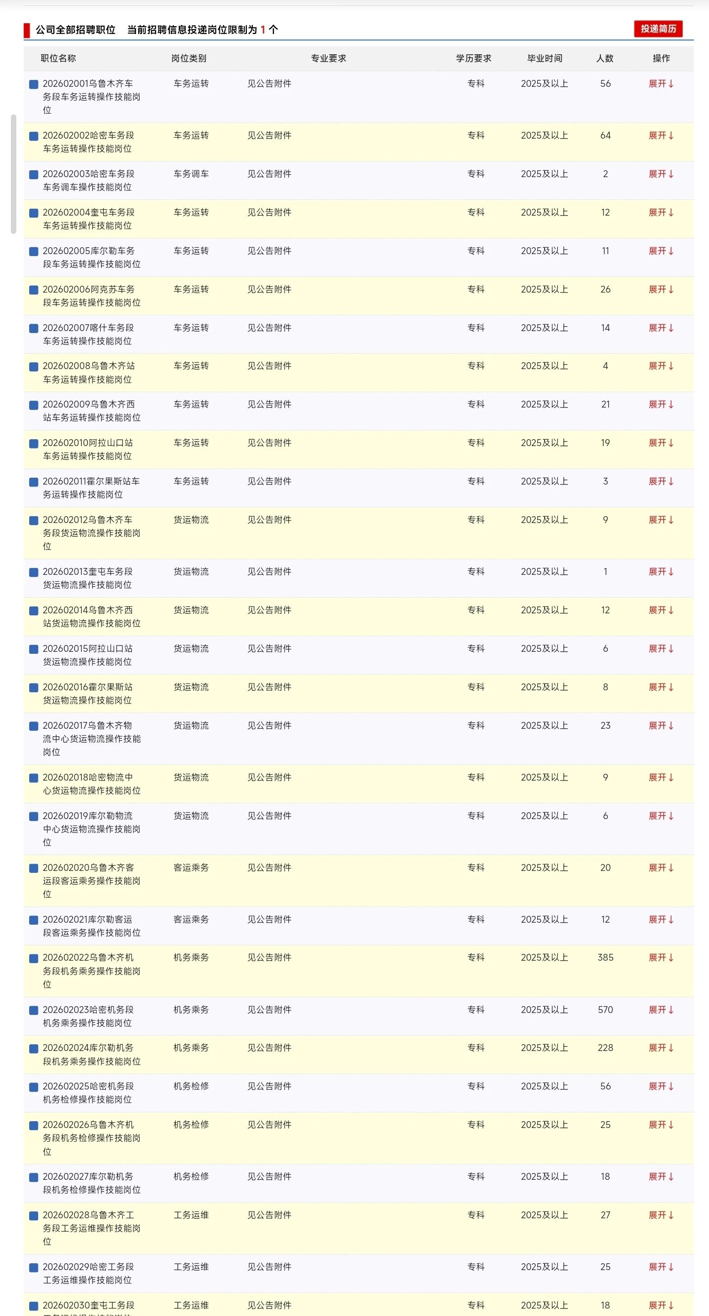 中国铁路乌鲁木齐局集团有限公司根据企业发展需要,拟招聘全日制普通高等院校高职(大专)毕业生,现将有关事项公告如下。