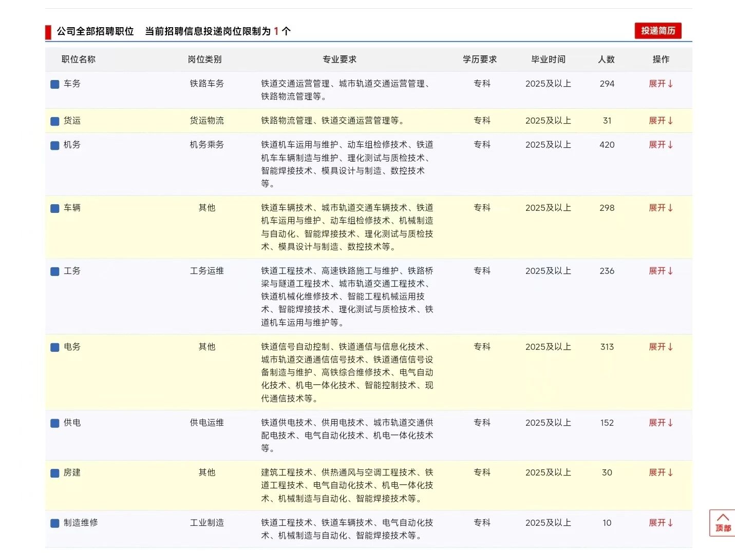 3.在校所学专业为铁路专业方向,所学课程包含铁路专业课程,专业、学历等符合招聘岗位要求