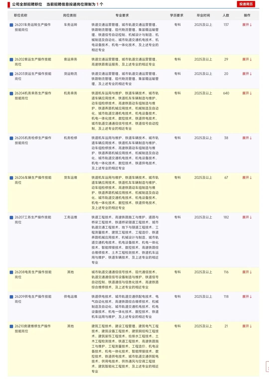 3.学历、专业等符合招聘岗位要求,所学专业为铁路专业方向,所学课程包含铁路相关课程。