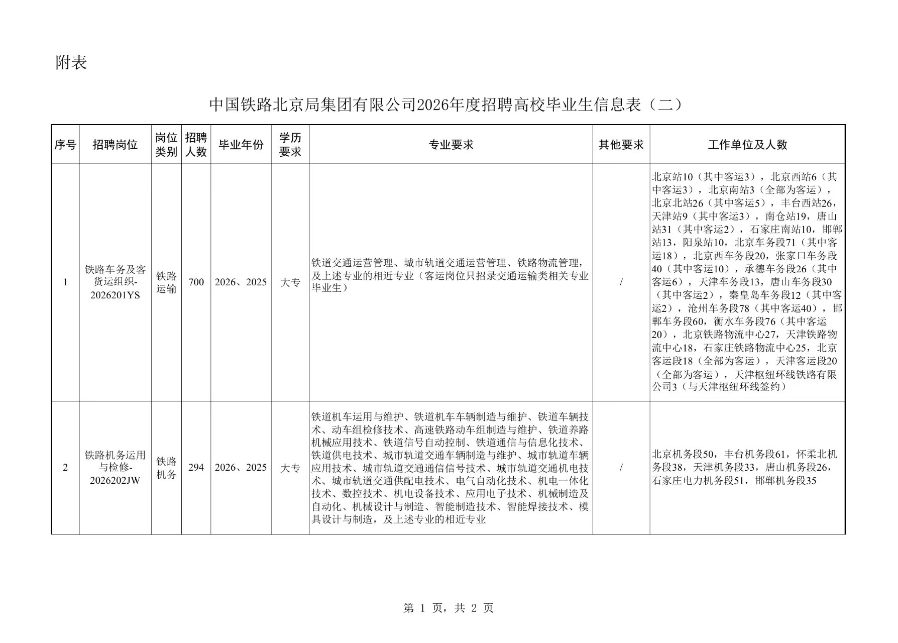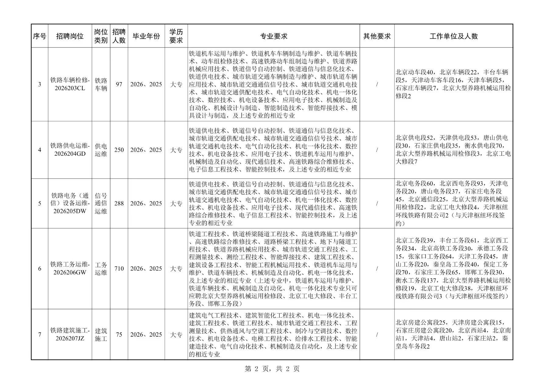 2. 身心健康,品行端正,诚实守信,遵纪守法;热爱铁路事业,能够适应铁路工作,服从单位对岗位的安排和调整。