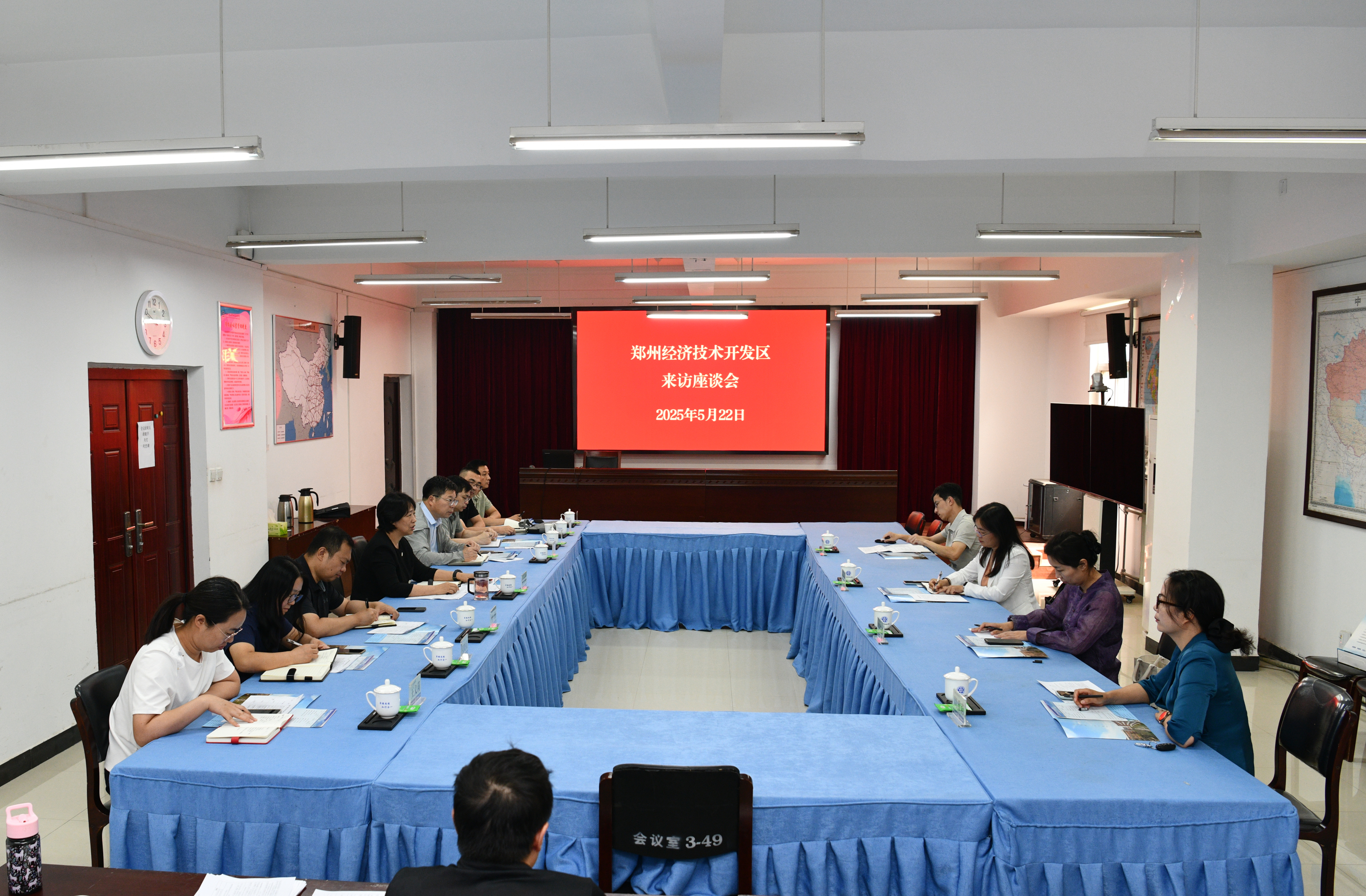 5月22日上午,郑州经济技术开发区教文体局党委委员周旭锦,经济发展局副主任科员孙芳芳、科技人才局招才引智办公室主任李致成等一行4人莅临我校交流市域产教联合体建设工作,副校长陆艳琦出席会议,机电工程学院、电气工程学院、电子工程学院、药学院、人工智能学院、继续教育学院负责人及科技处相关人员参加会议。