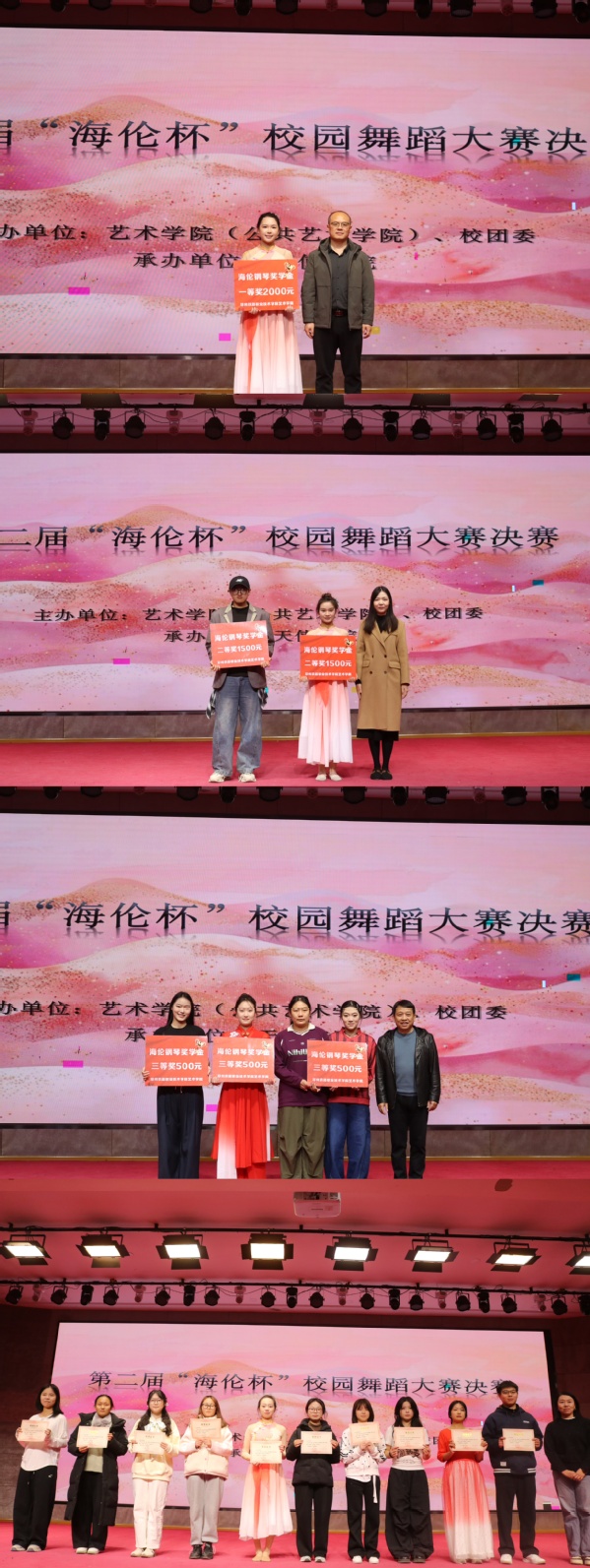 经过近一个小时的激烈比拼,现场评委从舞蹈编排、动作协调性、情感表达等多个维度对参赛作品进行公正评分,最终产生一等奖1名,获得“海伦钢琴”奖学金2000元;二等奖2名,获得“海伦钢琴”奖学金1500元;三等奖3名,获得“海伦钢琴”奖学金500元。校团委、艺术学院及天使书院负责人为获奖选手进行颁奖。
