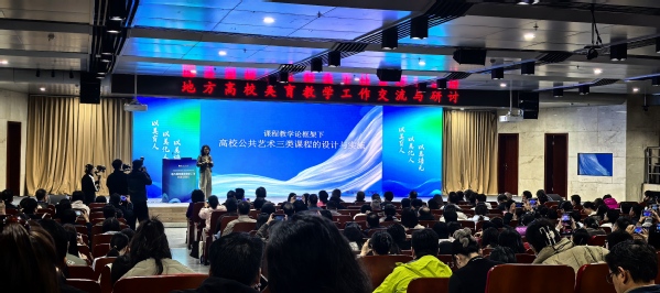 开幕式后,会议进入了精彩纷呈的专题报告环节。教指委的三位专家带来了高屋建瓴的理论指引与实践指导。副主任委员杜卫教授以《遵循美育特点,用艺术的语言讲艺术》为题,深刻剖析了美育区别于其他教育的独特规律,强调美育教学必须回归艺术本体,以情感体验和审美感知为核心。副主任委员尹爱青教授在报告《高校公共艺术课程教学论框架下多门类课程的设计与实施》中,系统阐述了一个科学的公共艺术课程教学论框架,为各高校设计音乐、美术、戏剧等多门类课程提供了清晰的逻辑路径与可操作的实施方案。委员宋修见教授则聚焦育人主体,在《美育教师职业素养和教学能力提升之道》报告中,详细论述了新时代美育教师应具备的综合素养以及教学能力持续提升的有效策略。之后由地方高校的经验分享唱主角,展示了扎根中国大地的美育实践智慧。