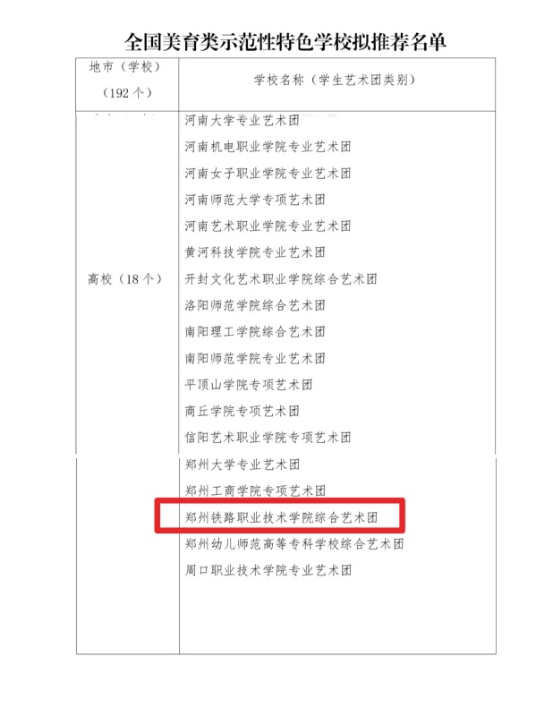 近日,河南省教育厅发布了《关于推荐申报全国美育类示范性特色学校和美育类基地的公示》,我校美育工作喜结双硕果,迎来历史性突破。根据公示结果,由我校艺术学院牵头精心申报的“mg娱乐电子游戏官网大学生艺术团”,成功获批“示范性综合艺术团”。同时,学校凭借长期以来在美育教育领域的扎实工作和卓越成效,被河南省教育厅正式推荐为“全国美育类示范性特色学校”。这两项重量级荣誉的取得,标志着我校美育育人体系建设和校园文化建设迈上了全新的国家级示范平台。
