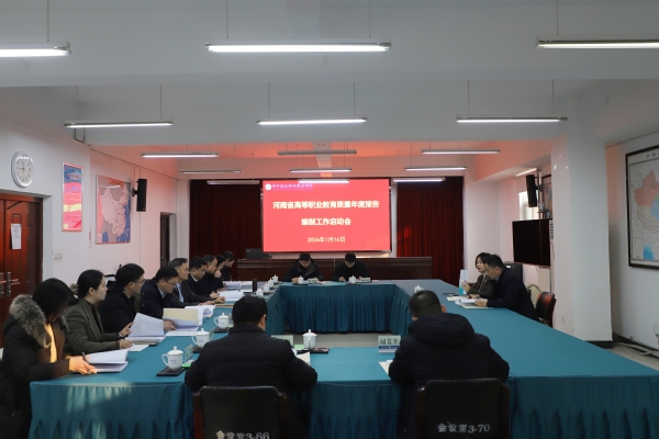 1月16日上午,河南省2025年高等职业教育质量年报编写启动会在我校302会议室召开。河南省教育厅职成教处副处长张俊丽出席会议并部署工作,会议由副校长李学武主持,全省 12 所高职院校的 17 名专家组成的编写团队及质量办公室相关负责人参会。