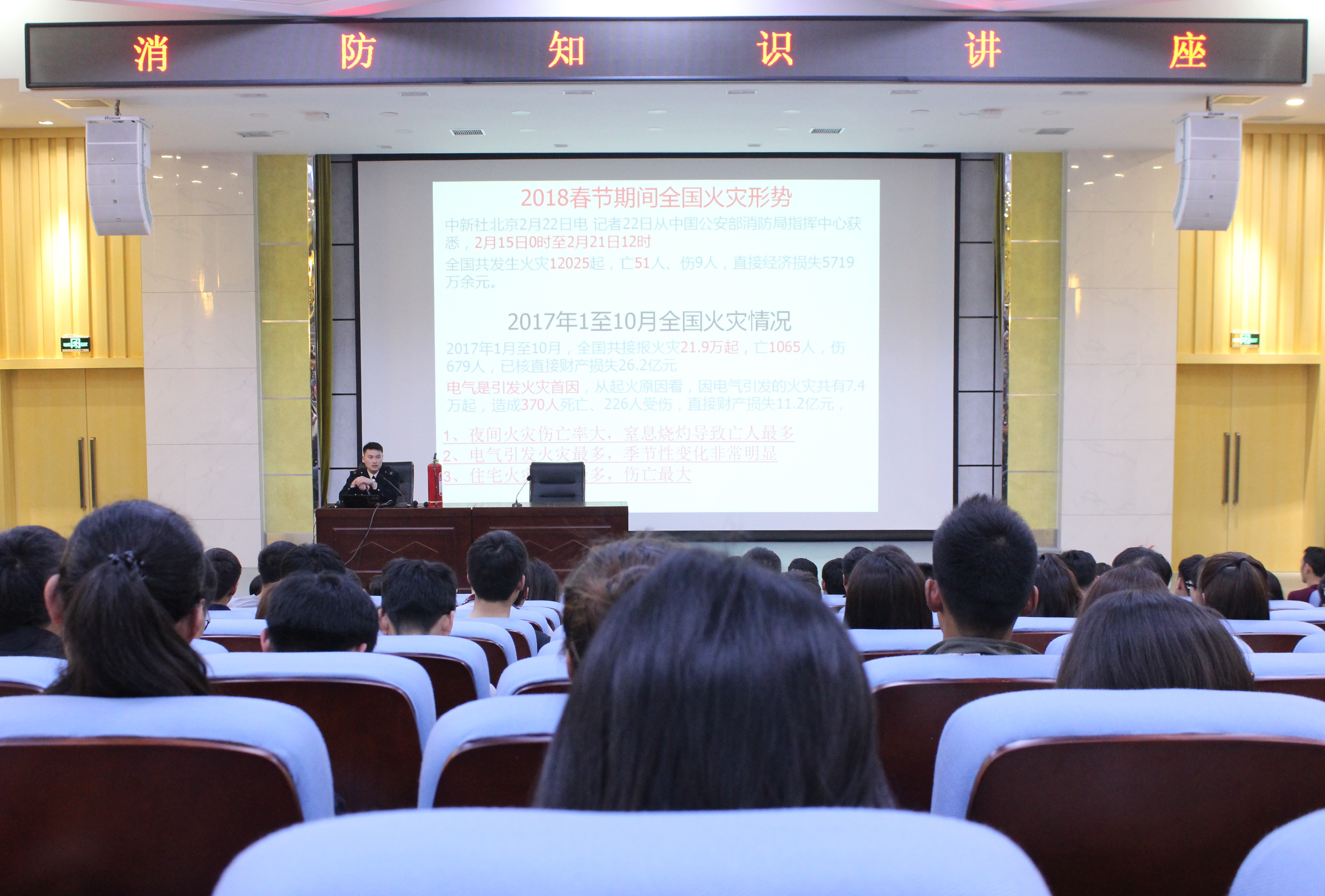 为了贯彻党的十九大精神,认真做好河南省教育厅《2018年河南省教育系统平安建设宣传月活动实施方案》(教办[2018]144号)和综治办【2017】35号文件《安全生产宣传教育“七进”活动基本规范》文件要求。3月27日,我校保卫处特邀河南省消防协会王双印教员在我校7号楼第二报告厅举办消防知识讲座。学校各单位(部门)治安消防管理员、各系学生代表、保卫处全体人员共200多人参加了讲座。