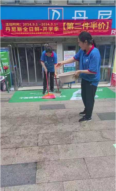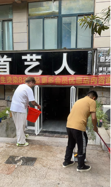 与此同时,校办产业中心还积极动员并组织了入驻商户参与“中秋大扫除”活动。商户们积极响应,拿起扫帚、抹布等工具,对各自店铺内外及周边环境进行了全面清理。大家分工合作,有的清扫路面垃圾,有的擦拭公共设施,还有的整理绿化带,经过一番努力,整个区域焕然一新,环境变得更加整洁美观。此次活动不仅美化了环境,更促进了商户之间的交流与合作,增强了社区凝聚力。