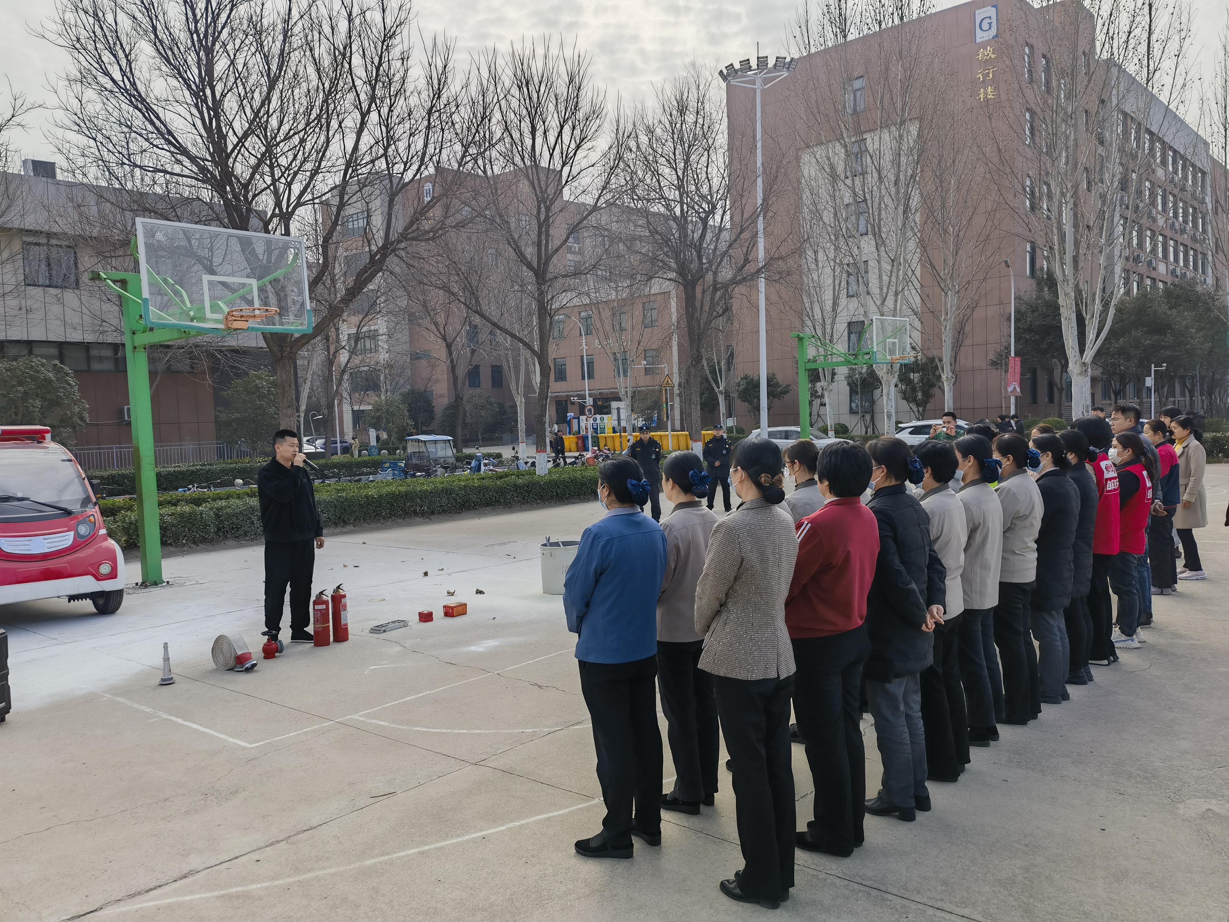 为进一步提升校园消防安全管理水平,强化职工安全责任意识与应急能力,切实保障师生生命财产安全,2月27日下午3点校办产业中心协同党委保卫处开展消防安全演练培训活动。对我校舒雅楼、博雅楼、通勤车、印刷服务部、浴池、悦来悦喜超市、京东便利店、自动设备等商业配套的关键岗位职工上了一堂生动的“安全必修课”。